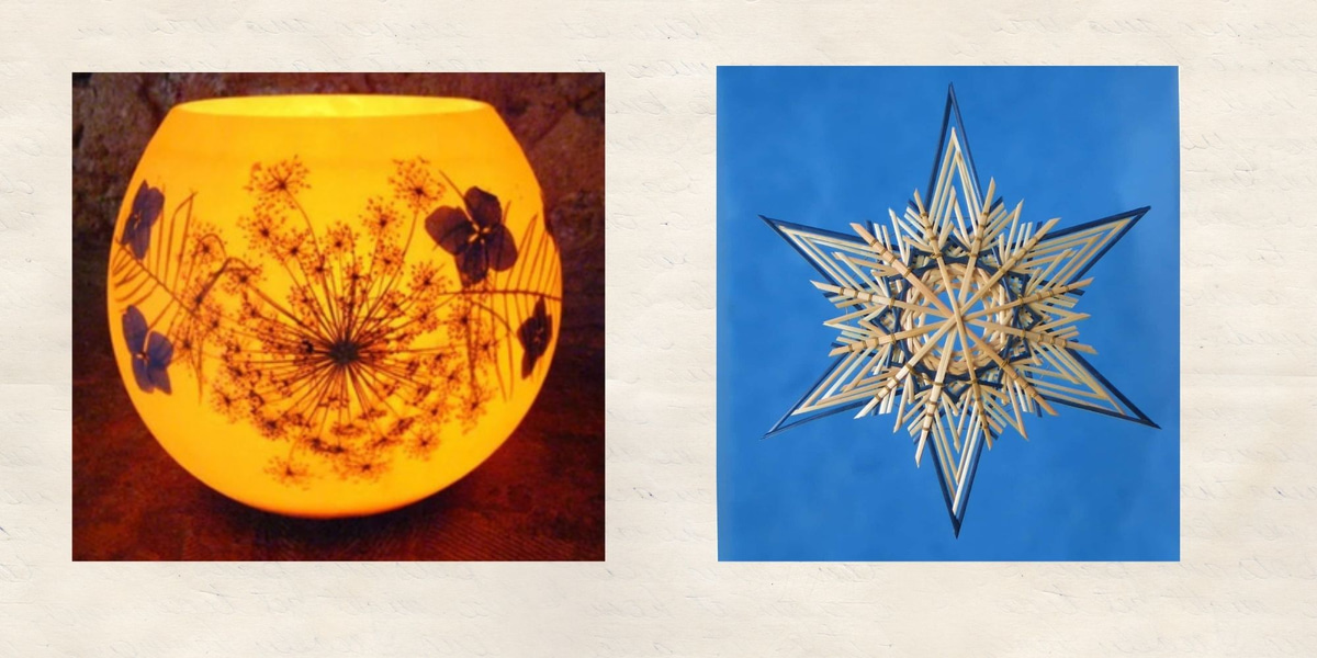During this hands-on workshop, eight lucky participants will learn the art of crafting beautiful beeswax luminaries adorned with pressed flowers, as well as the traditional technique of creating delicate German Straw Stars. You’ll take home one of your handcrafted creations—perfect for bringing warmth and light to the holiday season.